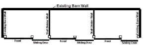 The opening for the stall doorway should measure approximately 4' center to center for the support posts. The additional support post placement will vary depending on if you are building 10' fronts, 12' fronts or larger. In many instances, you might be able to use the existing barn walls as walls for you horse stalls without having to install additional stall walls: